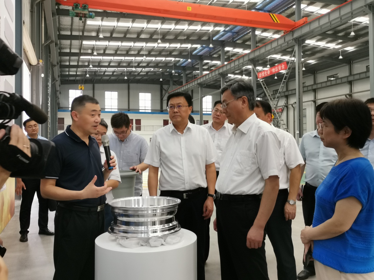 蔣洪副廳長一行參觀了公司廠區噴射成形自動化設備、大規格2195鋁鋰合金噴射錠坯以及各種航空航天產品樣件,認真聽取了我司董事長張豪的匯報,包括噴射成形技術及噴射成形產品應用情況。蔣洪副廳長對我司的技術創新方面取得的成績表示了充分的肯定與高度贊揚,并提出,技術與市場要齊頭并進,軍工市場可以體現技術高度,民品市場可以大幅提高產品合格率,期望公司盡快打開民品市場,進入飛速發展。并希望各級政府能夠大力支持豪然工作,盡快幫助促成與徐工集團的合作。