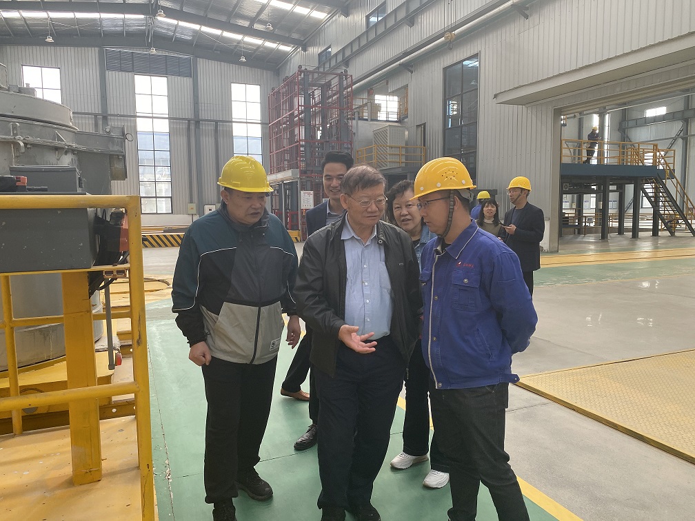 張新明院士仔細聆聽張捷總經理對每個生產環節的介紹,贊揚我司在技術進步上取得了很大進步,同時提出了一些寶貴的建議。張院士充滿信心地表示,我們一定要做出世界頂尖的中國鋁合金。